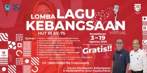 Payakumbuh — Dalam rangka memeriahkan Hari Ulang Tahun Kemerdekaan Republik Indonesia (HUT RI) yang ke-75, Forum Pembauran Kebangsaan Kota Payakumbuh bekerjasama dengan Pemerintah Kota Payakumbuh melalui Kantor Kesatuan Bangsa Dan Politik (Kesbangpol) menggelar lomba budaya daerah dalam bentuk lomba lagu kedaerahan.